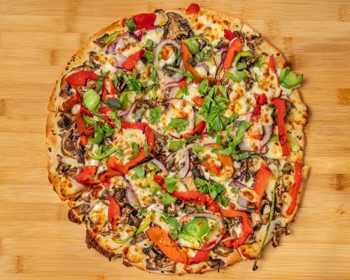 tomato garlic base, broccoli, mushroom, onion, tomatoes, caramelised onions garnished with pesto aeoli